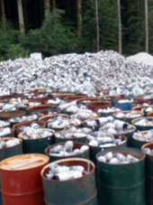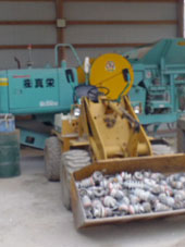 収集した廃プラスチックや、電柱工事の廃材である碍子(ガイシ)粉砕リサイクルをしています。